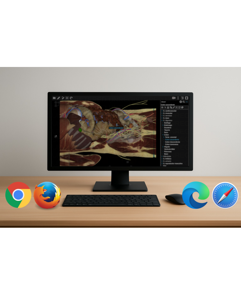 Realice disecciones virtuales de abdomen donde y cuando usted lo prefiera. Haga cortes selectivos en cualquier plano y ubicación. Incluye fotografías y tomografías. Duración: 1 año