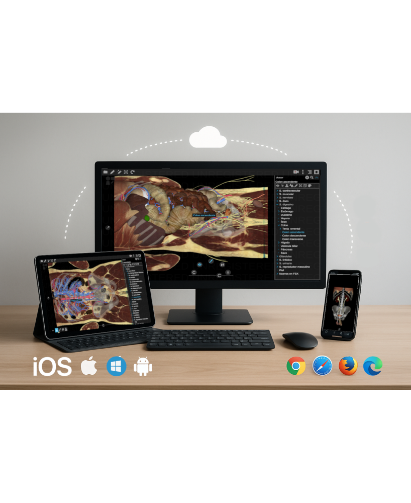 Realice disecciones virtuales de abdomen donde y cuando usted lo prefiera. Haga cortes selectivos en cualquier plano y ubicación. Incluye fotografías y tomografías.