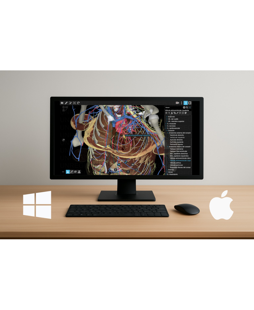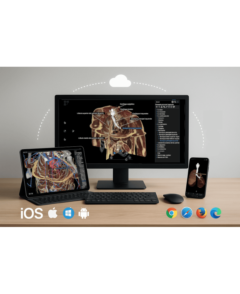 Realice disecciones virtuales de tórax donde y cuando usted lo prefiera. Haga cortes selectivos en cualquier plano y ubicación. Incluye fotografías y tomografías.