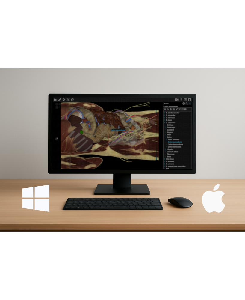 Realice disecciones virtuales de abdomen donde y cuando usted lo prefiera. Haga cortes selectivos en cualquier plano y ubicación. Incluye fotografías y tomografías.