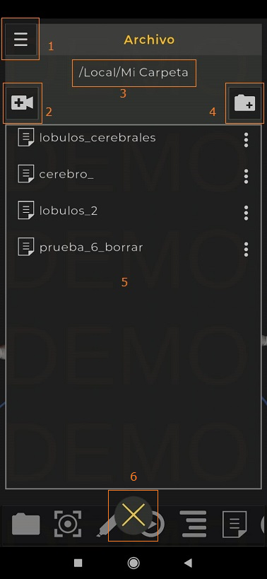 - Al tocar esta zona se pasa a las escenas de “Mi Carpeta” o al contenido de la carpeta seleccionada.