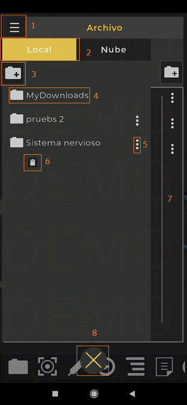 En la carpeta de local se encuentran la lista de carpetas que han sido creadas y guardadas por el usuario en el dispositivo.