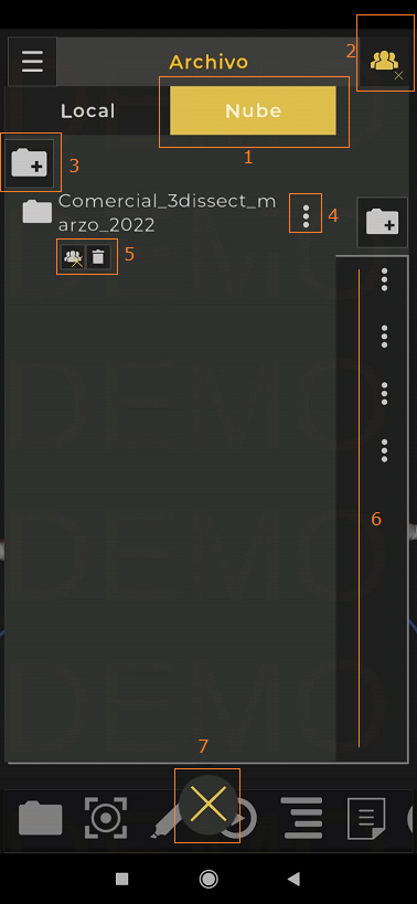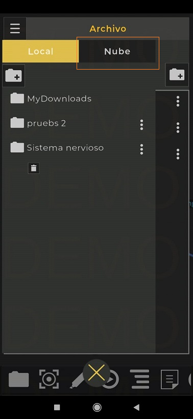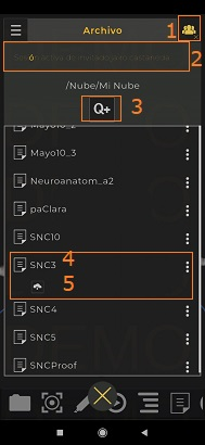 - Dé clic en este ícono en la ventana Archivo para acceder a las carpetas. “Local” o “Nube”
