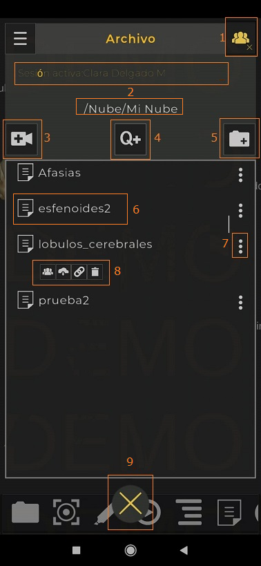 - El dar clic en esta área abre pantalla donde se encuentran las escenas que el otro usuario ha compartido en la Nube.