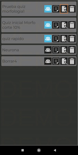3dissect App ProExámenes Editar quiz Ingrese a la “Nube” y de un toque en Se abre la siguiente pantalla: Dé un toque sobre el ícono del examen que desee editar. Se abre el examen, realice y guarde los cambios que requiere.