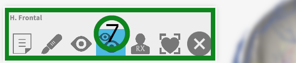 Presenta opciones de descripción, estado de corte y visibilidad para el órgano seleccionado en el ambiente 3D.